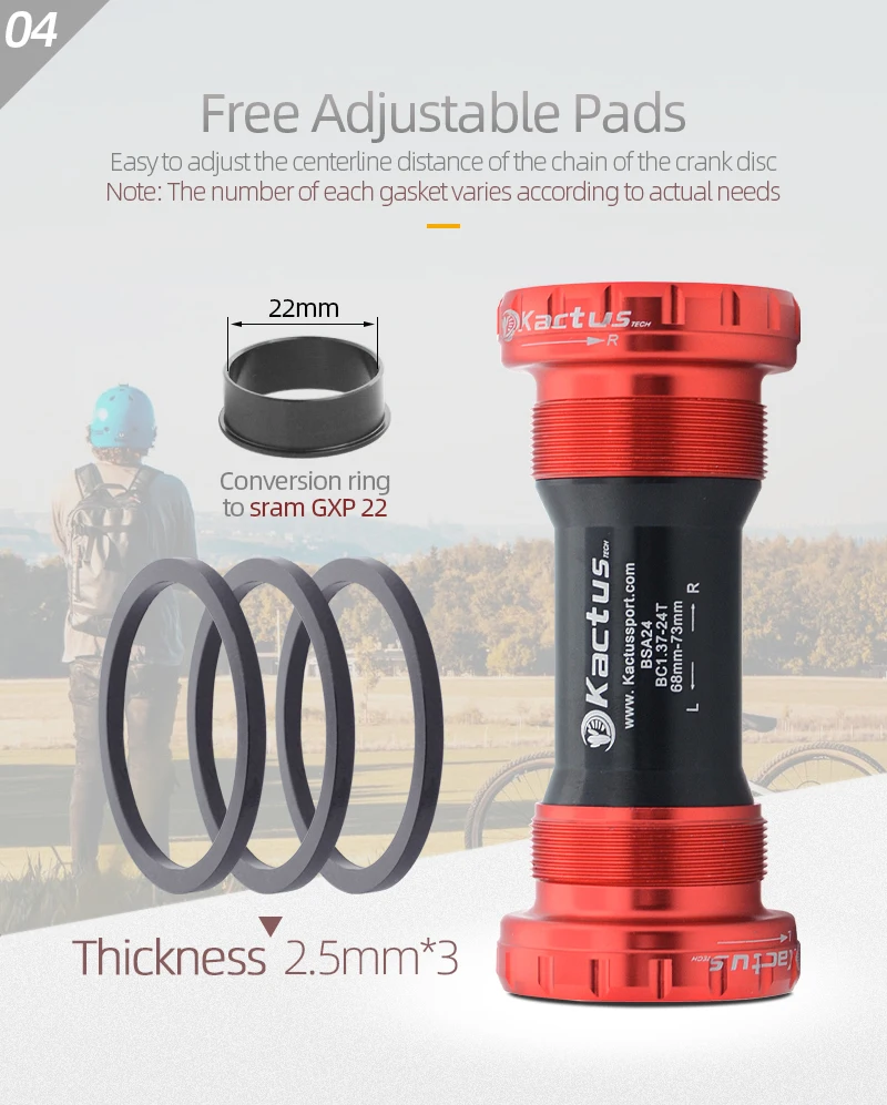 Adequado para:Gama completa de pedaleiras Shimano, bicicleta de estrada SRAM GXP ou pedaleiras MTB, pedaleiras Rotor 3D24, pedaleiras Oldhu24 e outras marcas de pedaleiras com diâmetro de eixo 24 mm.